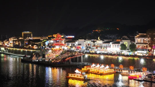 在皖南特委旧址,红色剧本杀让革命岁月在互动中重现;在新安医学养生馆,千年智慧在”望闻问切“中传承;在花山谜窟景区,“寻觅花仙子”让古老传说在探索中延续;在三江口历史文化街区,打更人与卖货郎的吆喝唤醒市井记忆;在新安江上,“鱼龙”夜游与非遗打铁花交织成璀璨夜景;大型演艺《徽秀》,以现代视听演绎徽州古今;“黄山岸香号”游轮启航,开启水上文旅新体验……文化于此,入景、润景、成景,焕发时代新生。