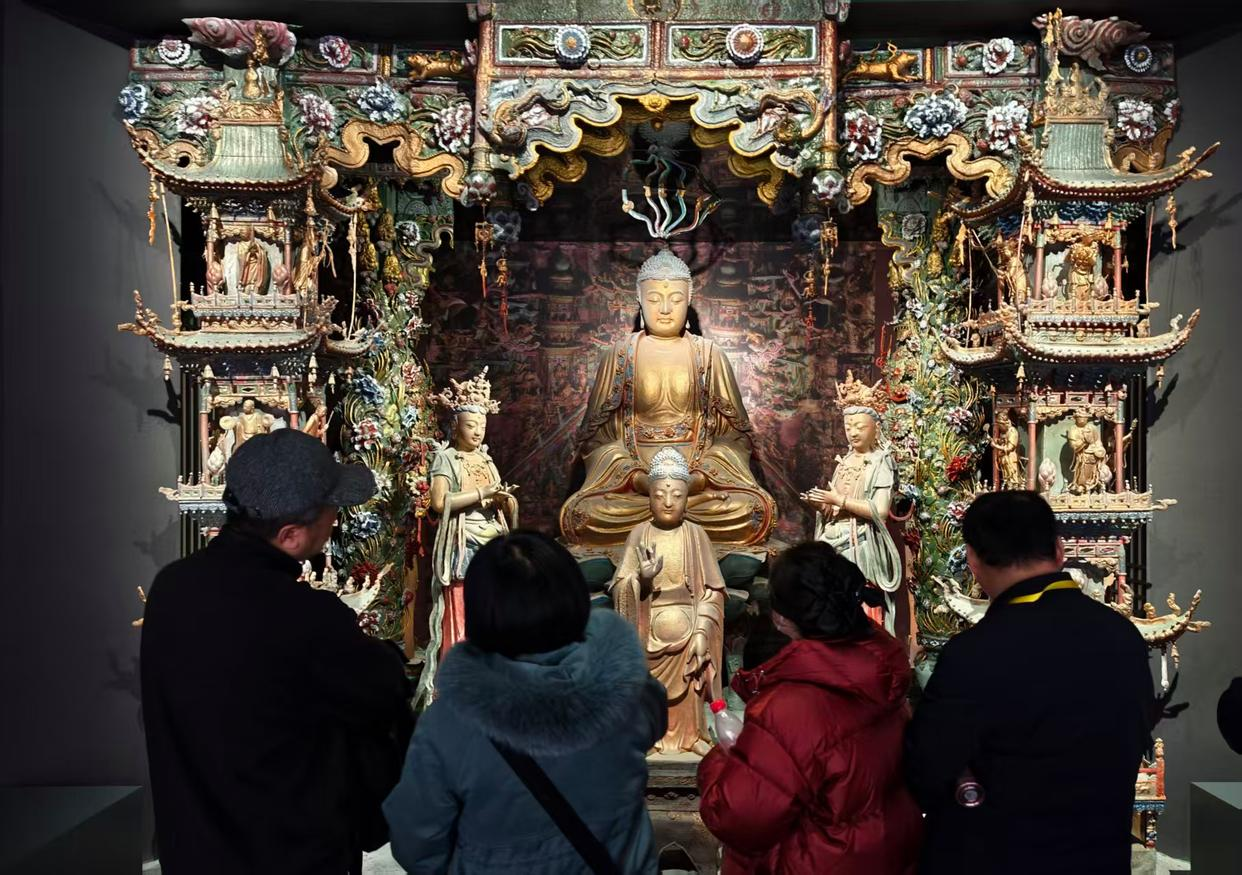 观众参观3D复原的小西天大雄宝殿主龛场景 图片来源:新京报