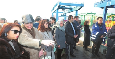 驻华使节一行参观天津港“智慧零碳”码头。 天津日报记者 刘欣 姜宝成 摄