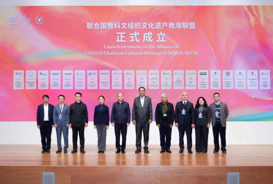 为进一步加强国际传播能力建设,服务共建“一带一路”倡议,仪式现场宣布成立“联合国教科文组织文化遗产教席联盟”。该联盟由“丝绸之路遗产”教席发起,联合英国杜伦大学、法国新索邦大学、新加坡国立大学、清华大学等全球知名高校和机构的教席共同组建。联盟首届秘书处设于浙江大学艺术与考古学院。