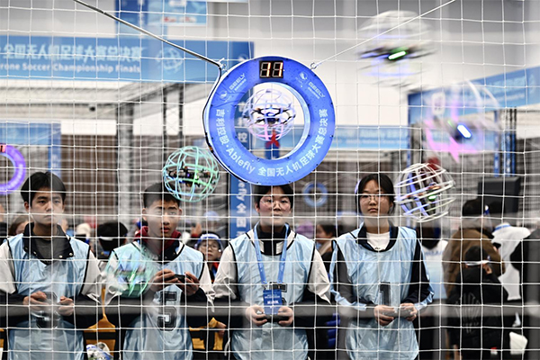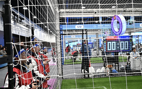 在赛场一角,裁判员蒋佳凝正全神贯注地盯着空中的“足球”。由运动员精准操控的无人机被塞进球笼,在对抗和搏击中向着球网冲锋。周围,欢呼和呐喊声不断。作为一名排球运动员,蒋佳凝正因为这项科技体育项目的兴起,开启职业生涯的转型。她感慨道:“每周执裁20组赛事已成常态,成都的无人机足球不仅是‘人气王’,更形成了一种独特的竞赛文化。”