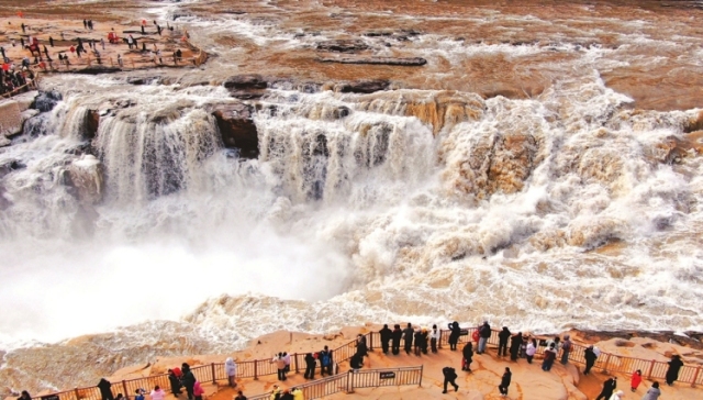 山西临汾吉县黄河壶口瀑布景区:飞瀑迎客