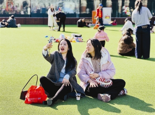 近日,天津迎来晴朗好天气,人们纷纷走出家门,享受明媚春光。(记者 刘欣 摄)