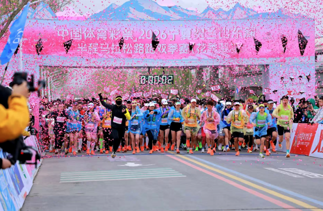 人民网银川4月20日电(记者李甜甜)4月19日,随着清脆的发令汽笛响彻赛场,「中国体育彩票」2026宁夏贺兰山东麓半程马拉松路跑双季赛(花季赛)在贺兰羿射箭主题综合运动中心正式开跑。来自全国各地的近5000名奔跑者齐聚贺兰山东麓葡萄酒产区,他们在春日盛景中奔赴这场以奔跑为名的盛会,用脚步丈量这片孕育“紫色奇迹”的沃土。